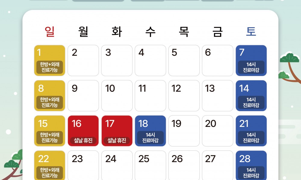 도담한방병원 2월 진료일정 안내
