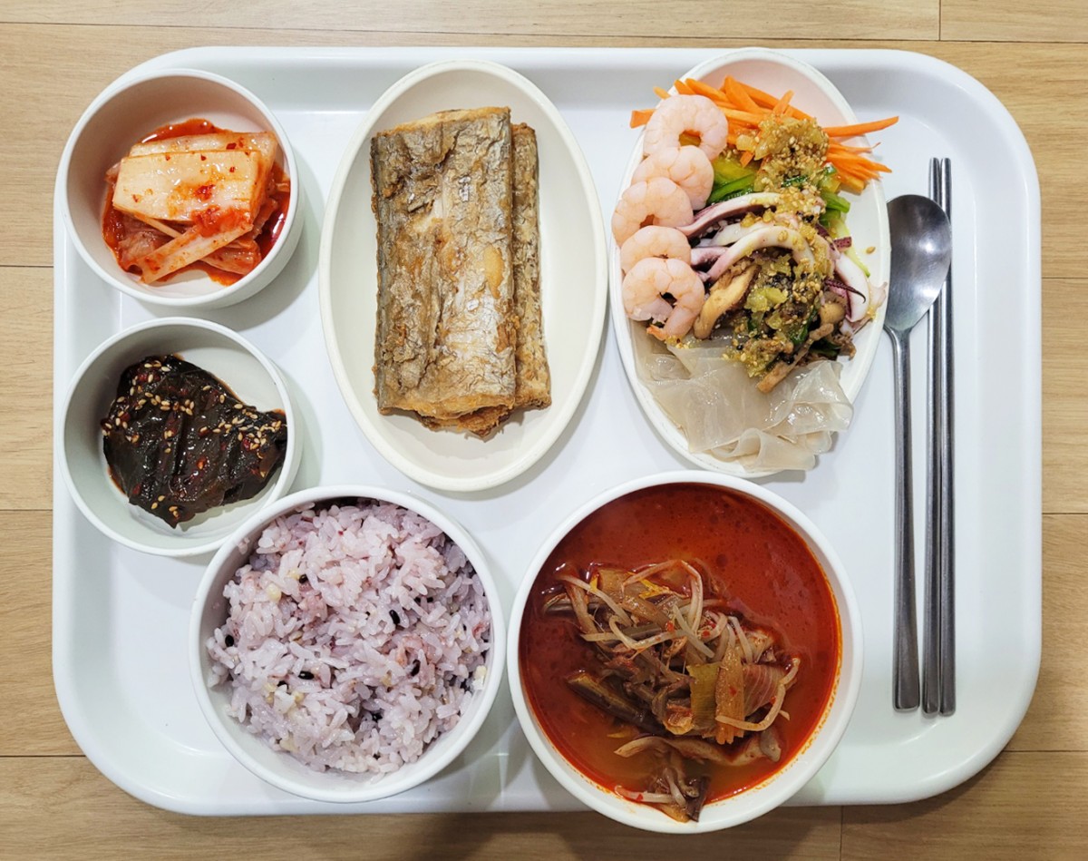 흑미밥, 육개장, 양장피, 갈치구이, 깻잎장아찌, 포기김치