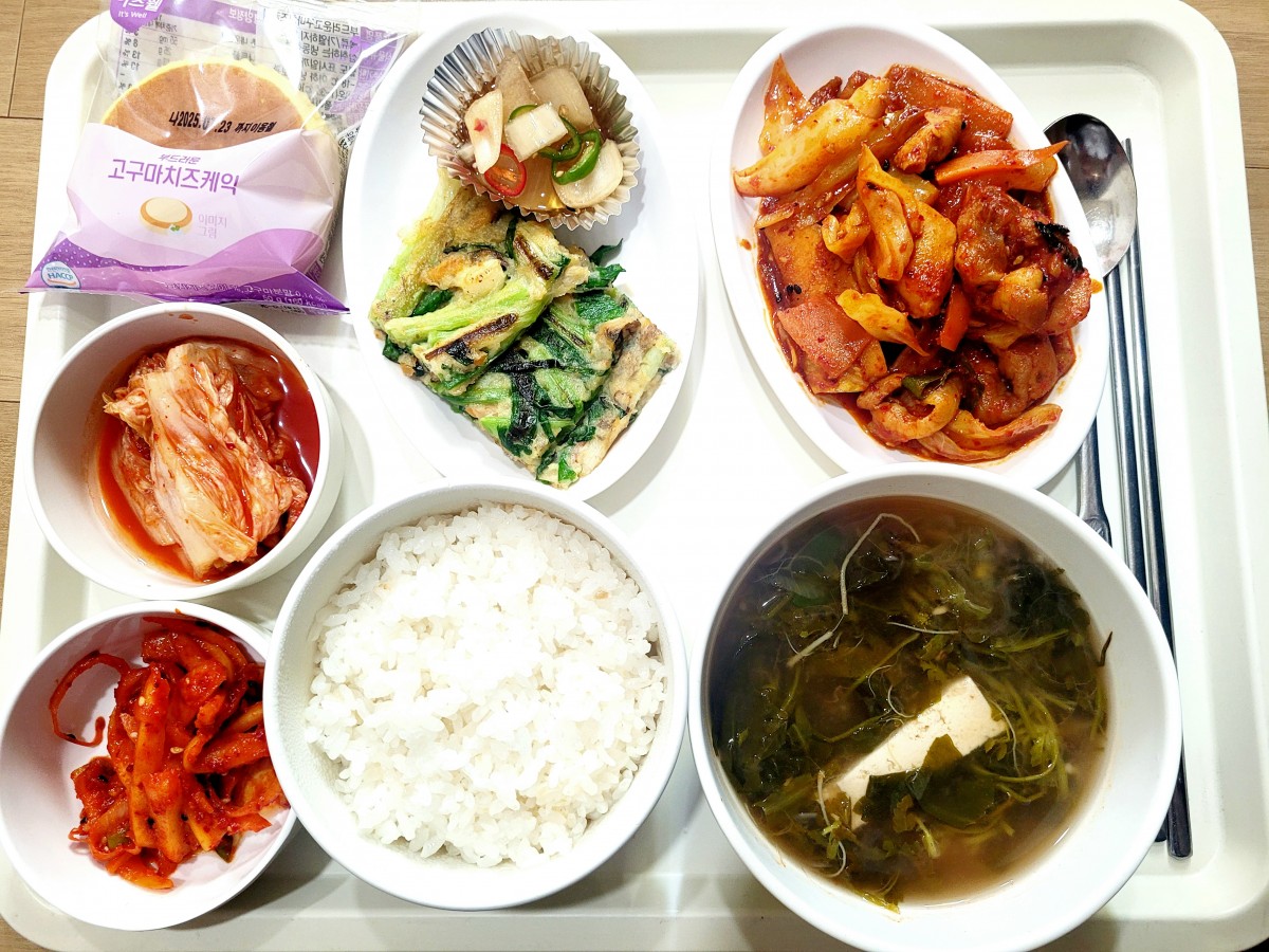 [2월 20일 - 목] 도담식단 페이지 정보 [2월 20일 - 목] 도담식단 조회 작성일 25.03.21 본문 냉이된장국 닭갈비 해물파전*양파장 도라지초무침 치즈케익 이전[2월 21일 - 금] 도담식단 25.03.21 다음[2월 19일 - 수] 도담식단 25.03.21 목록 답변