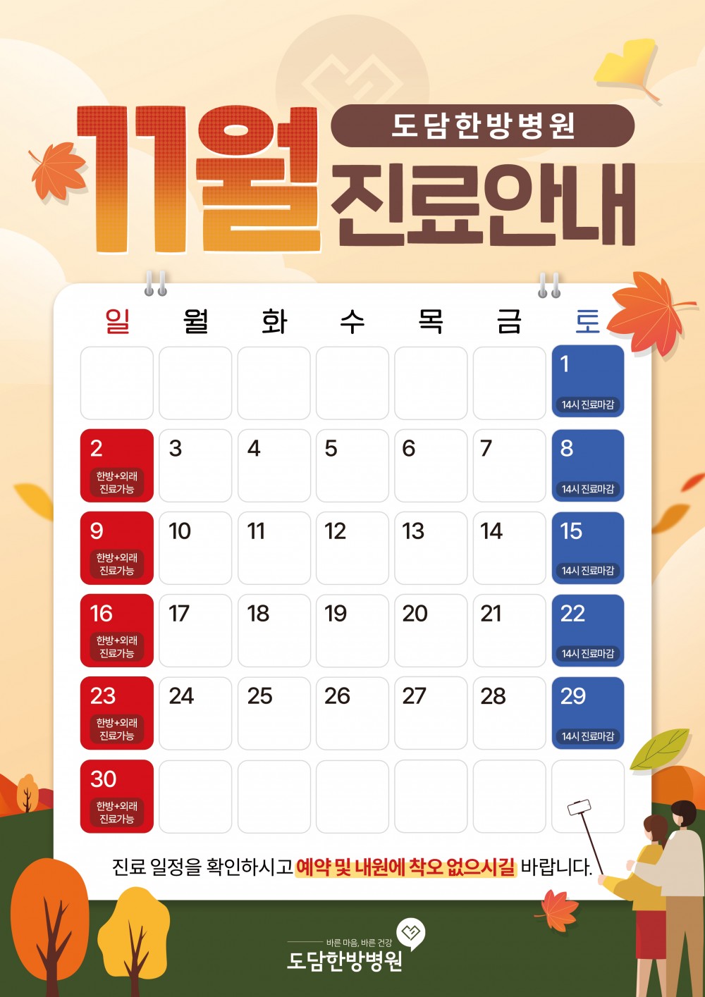 도담한방병원 11월 진료일정 안내