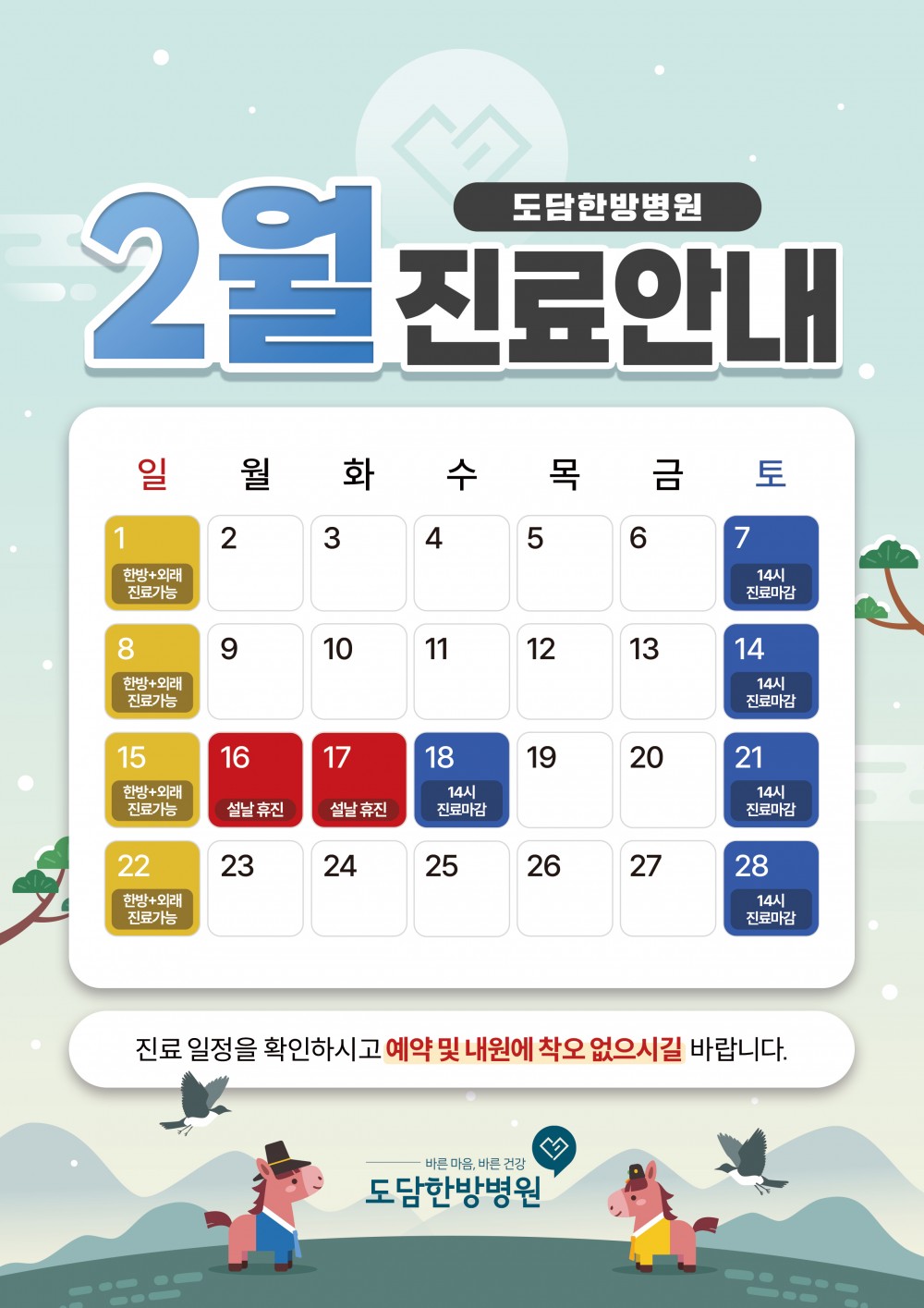 도담한방병원 2월 진료일정 안내