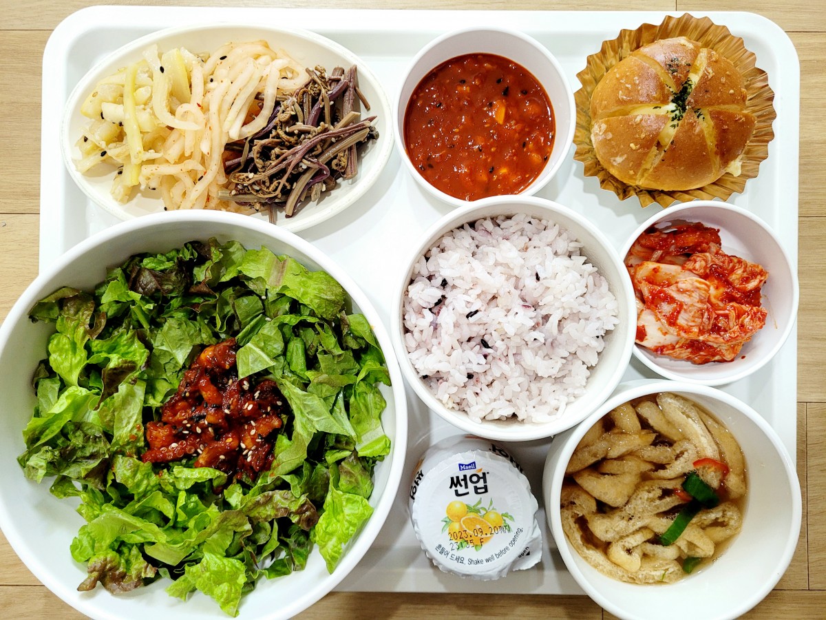 [9월 8일 - 금] 도담식단 페이지 정보 [9월 8일 - 금] 도담식단 조회 작성일 23.09.13 본문 낙지상추비빔밥 삼색나물 육쪽마늘빵 장국 썬업 포기김치 이전[9월 11일 - 월] 도담식단 23.10.04 다음[9월 7일 - 목] 도담식단 23.09.13 목록 답변