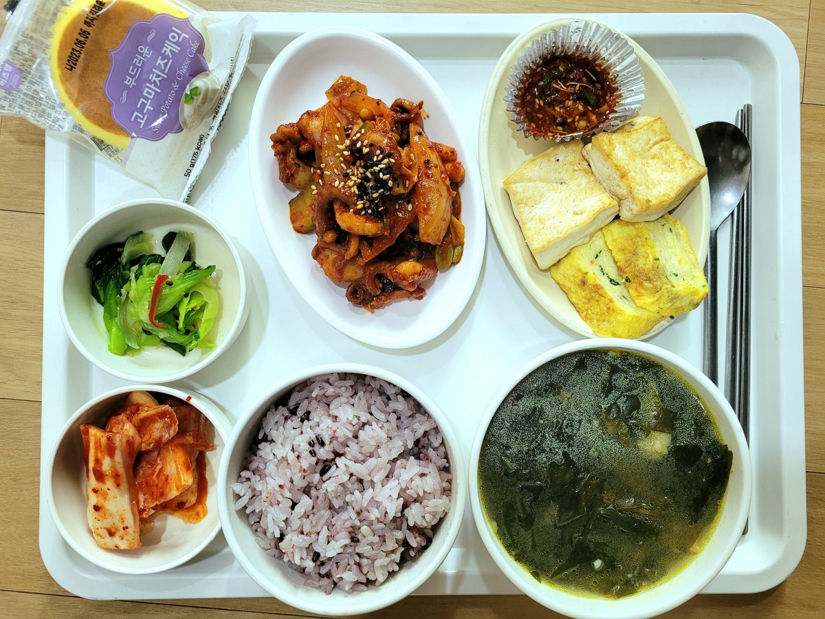 [12월 23일 - 금] 도담 식단 페이지 정보 [12월 23일 - 금] 도담 식단 조회 작성일 22.12.26 본문 흑미밥, 소고기미역국 낙지볶음 계란말이*두부구이 청경채무침 치즈케익 포기김치 이전[12월 26일 - 월] 도담 식단 22.12.30 다음[12월 22일 - 목] 도담 식단 22.12.22 목록 답변