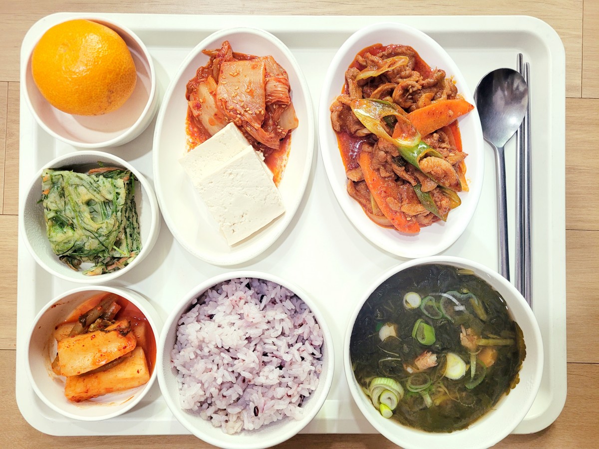 [12월 29일 - 목] 도담 식단 페이지 정보 [12월 29일 - 목] 도담 식단 조회 작성일 22.12.30 본문 흑미밥. 건새우아욱국 오리불고기 김치볶음*두부 세발나물전 귤 알타리김치 이전[12월 30일 - 금] 도담 식단 23.01.02 다음[12월 28일 - 수] 도담 식단 22.12.30 목록 답변