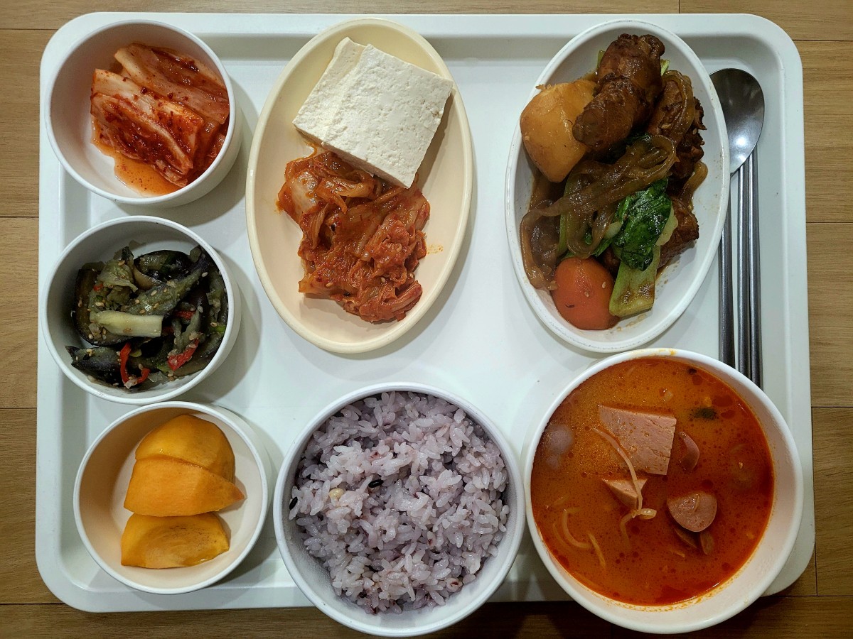 [11월 1일 - 화] 도담 식단 페이지 정보 [11월 1일 - 화] 도담 식단 조회 작성일 22.11.01 본문 흑미밥, 부대찌개 찜닭 김치볶음*두부 가지무침 단감 포기김치 이전[11월 3일 - 목] 도담 식단 22.11.10 다음[10월 31일 - 월] 도담 식단 22.11.01 목록 답변