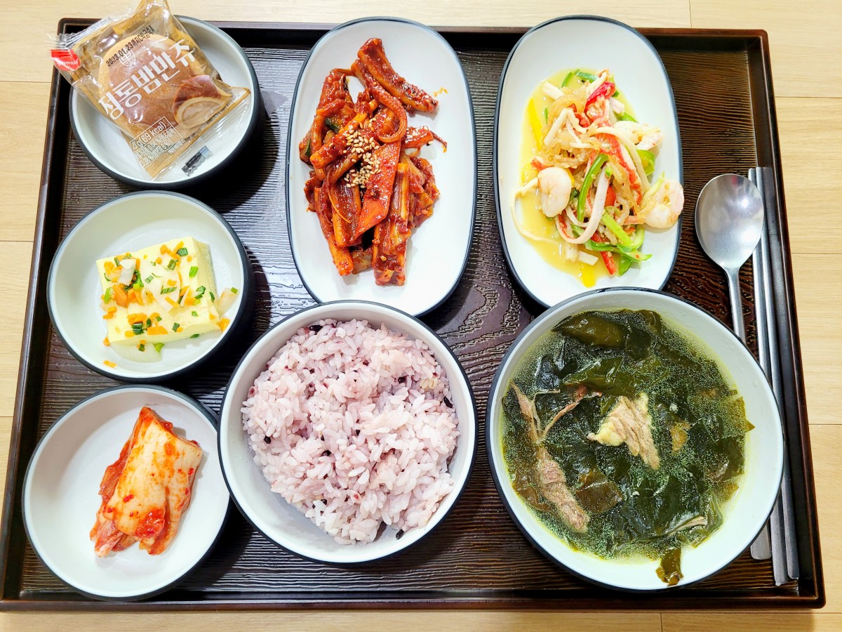 [1월 9일 - 월] 도담 식단 페이지 정보 [1월 9일 - 월] 도담 식단 조회 작성일 23.01.09 본문 흑미밥, 소고기미역국 오징어볶음 해파리냉채 계란찜 밤만쥬 포기김치 이전[1월 10일 - 화] 도담 식단 23.01.16 다음[1월 6일 - 금] 도담 식단 23.01.09 목록 답변