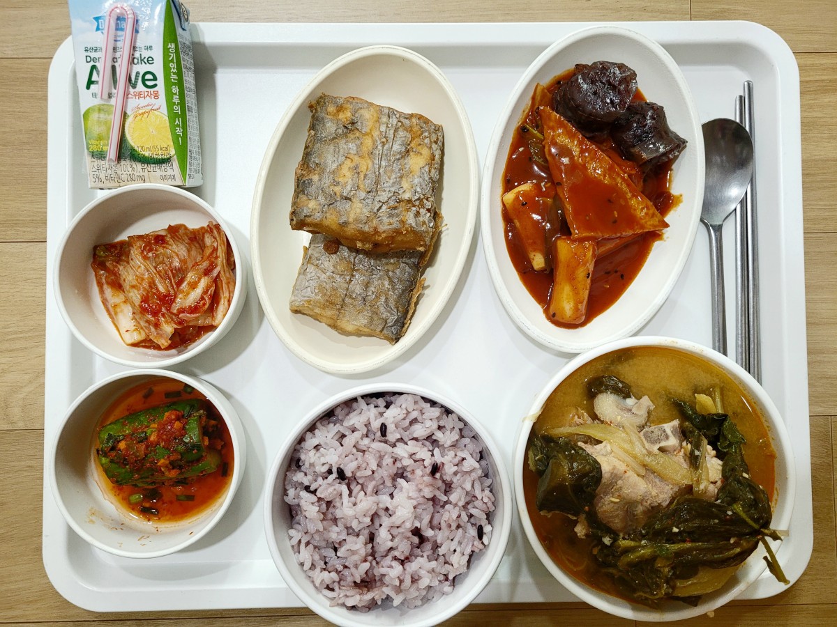 [8월 24일 - 수] 도담 식단 페이지 정보 [8월 24일 - 수] 도담 식단 조회 작성일 22.08.29 본문 흑미밥. 등뼈우거지탕 갈치구이 떡볶이*순대 오이소배기 얼라이브 포기김치 이전[8월 25일 - 목] 도담 식단 22.08.29 다음[8월 23일 - 화] 도담 식단 22.08.23 목록 답변