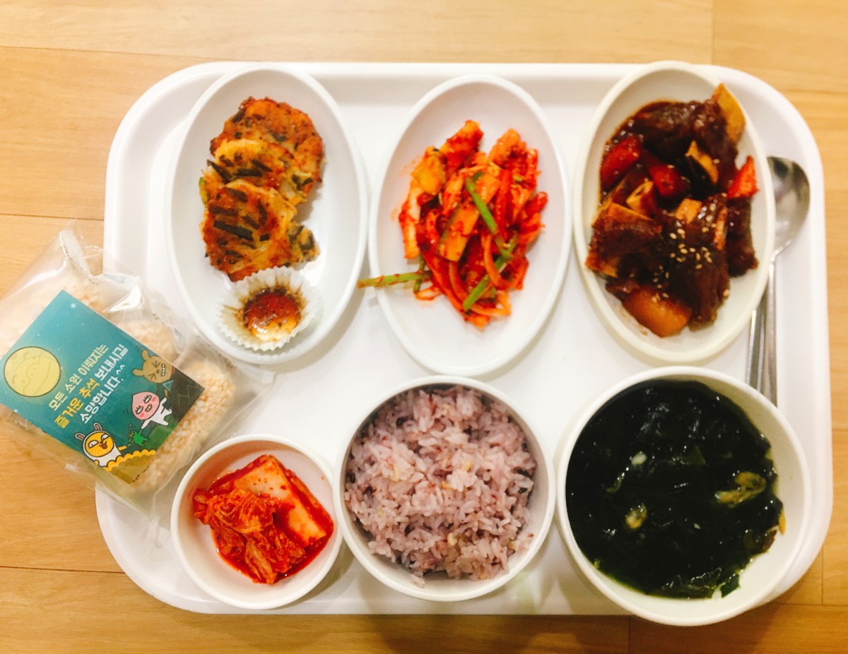 흑미밥, 조갯살미역국, 소갈비찜, 오징어야채무침, 녹두전, 포기김치, 유과